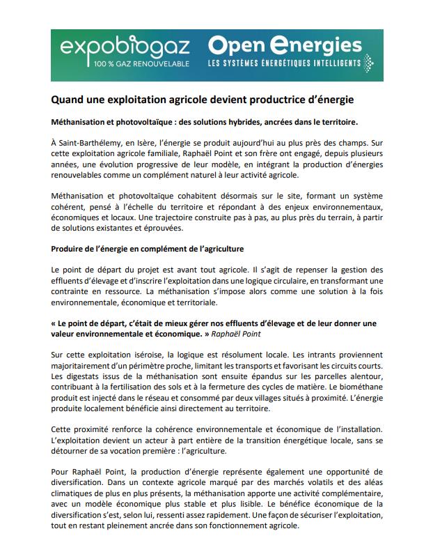 Article de Presse - Quand une exploitation agricole devient productrice d’énergie